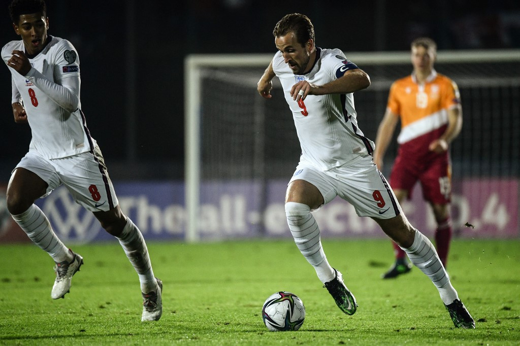 England's forward Harry Kane runs with the ball during the FIFA World Cup Qatar 2022 qualification Group I football match between San Marino and Engla